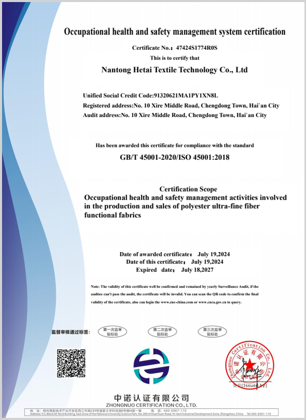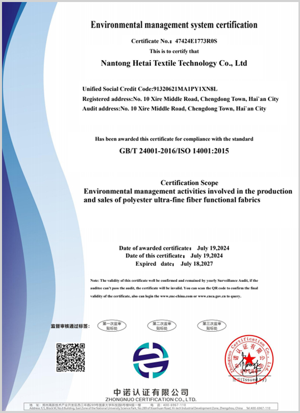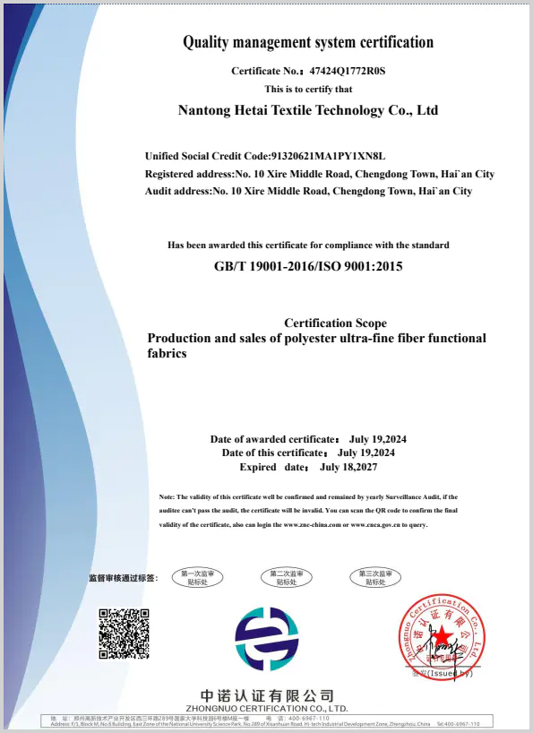 Founded in 2002 and based in Jiangsu Province, China, Hetai Textile has grown over two decades into a full-spectrum enterprise specializing in the development, production, sales, and service of interlining fabrics. Our facilities include weaving, dyeing, and coating workshops, equipped with advanced production lines and supported by a top-tier technical team.We continuously innovate to keep our product quality at the industry's forefront. With a strong customer focus, we are dedicated to delivering premium products and services, adapting to market trends, and maintaining a comprehensive quality control system to meet diverse client needs. Hetai looks forward to collaborating with you to create a brilliant future together.